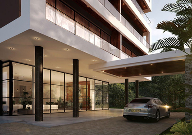9 Oak West is a mid-rise development featuring 90 serviced two-bedroom apartments, each with an average area of 80 sqm. The design prioritizes spatial efficiency, with distinct living, dining, and sleeping areas thoughtfully organized to enhance privacy and functionality. The building incorporates a six-level podium for 90 parking bays, while the rooftop hosts a swimming pool and leisure facilities, offering expansive views. The architecture blends service-oriented functionality with refined residential spaces, tailored for both short- and long-term stays.